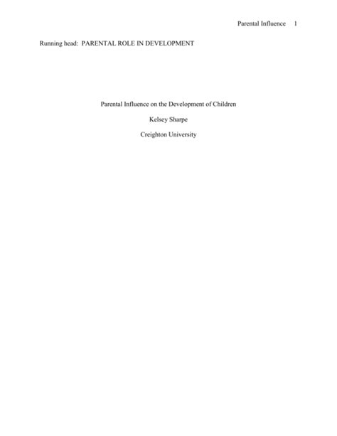 Read Running Head: Parental Role In Development PDF Kindle Editon